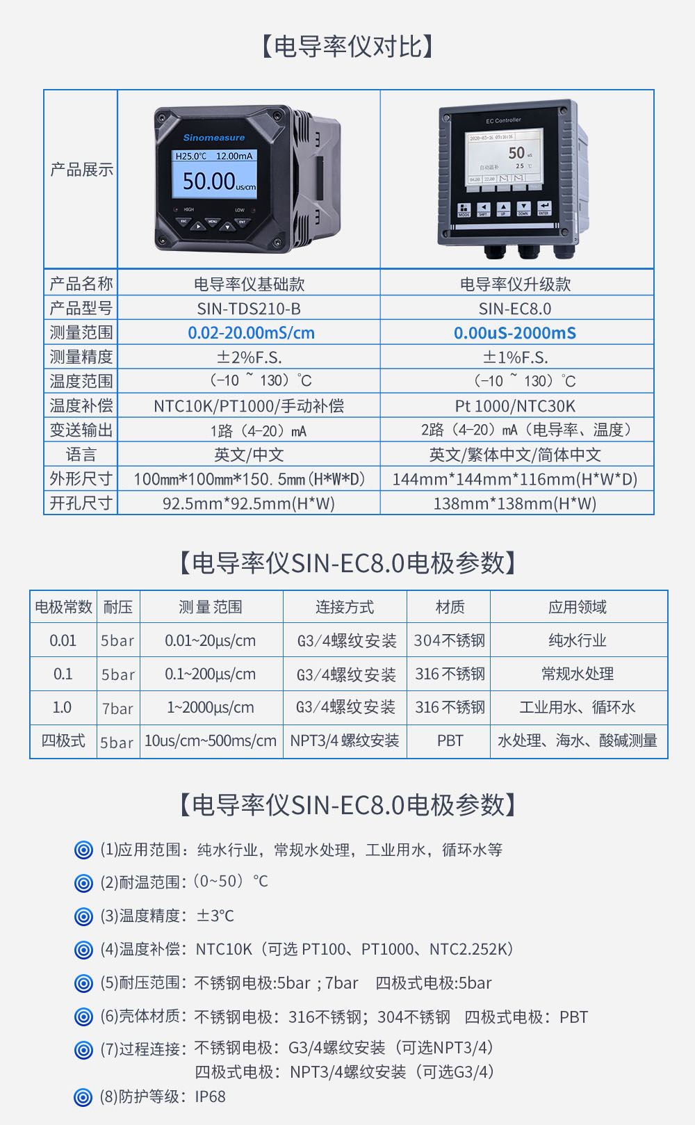 簡要描述:電導率電極專門用于純水、水處理等的電導值測量,特別適合火力發電廠和水處理行業的電導率測量。