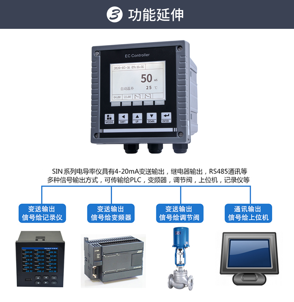 簡要描述:儀器用于工業(yè)上電導/比電阻/鹽度/溶解固體總量及溫度的測量,如: 廢水,純凈水,高純水,環(huán)境監(jiān)測,食品生產(chǎn)過程等,儀器可以盤面安 裝,壁掛安裝,管路安裝。儀器提供 2 路電流輸出,最大負載為 500Ω, 儀器提供 3 路控制用繼電器,繼電器最大承受電壓及電流為 5A/250VAC 或 5A/30VDC。