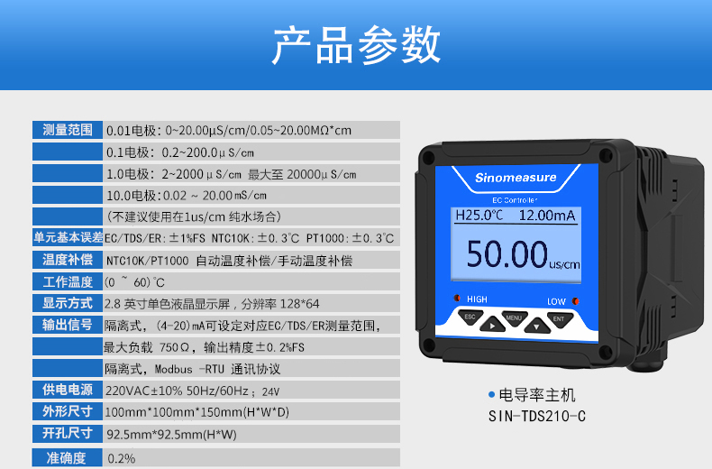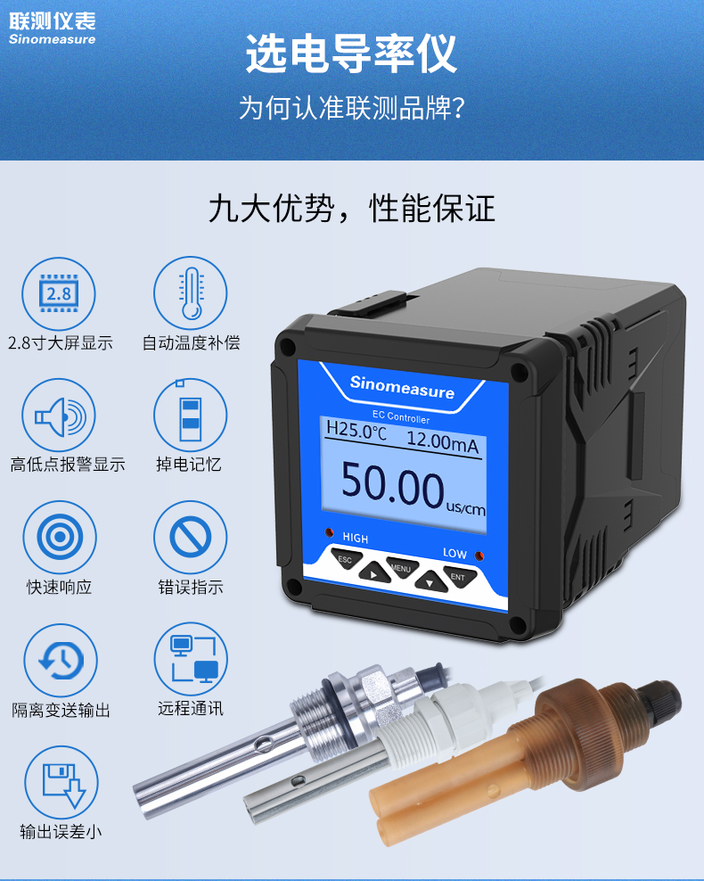 簡(jiǎn)要描述:SIN-TDS210-C工業(yè)電導(dǎo)率儀表,廣泛應(yīng)用于火電、化工化肥、冶金、環(huán)保、制藥、生 化、食品和自來水等行業(yè)。控制器主要對(duì)溶液中的電導(dǎo)率/總?cè)芙夤腆w/ 電阻率和溫度進(jìn)行連續(xù)監(jiān)測(cè)。