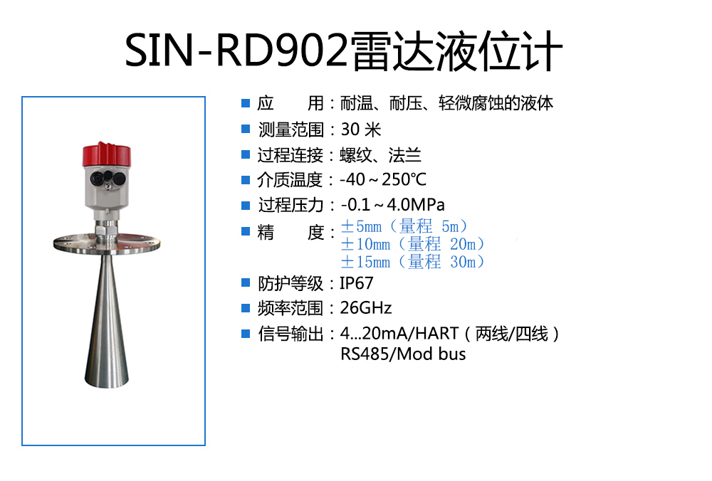 當前位置:首頁 > 雷達液位計 > 聯測_SIN-RD902雷達液位計_適用于高溫高壓的液體_
