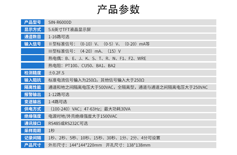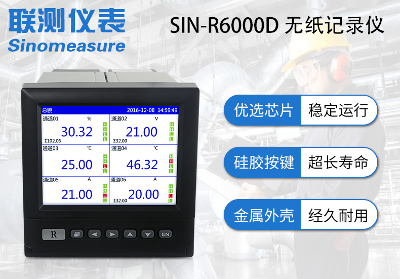 簡(jiǎn)要描述:SIN-R6000D系列無紙記錄儀是一種高速高性能微處理器和5.6英寸彩色液晶顯示屏,對(duì)現(xiàn)場(chǎng)各種溫度、壓力、流量、電量等信號(hào)實(shí)現(xiàn)監(jiān)測(cè)、控制和記錄功能。