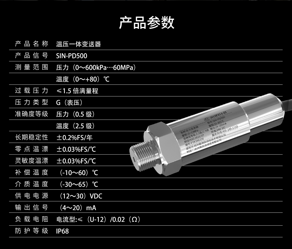 簡要描述:溫壓一體變送器是集壓力、溫度一體測量的變送器。 選用高可靠硅壓阻壓力傳感器、熱電阻等作為核心元件, 經過溫度補償、數字電路修正和信號調理,輸出標準的 工業信號。