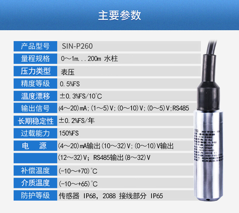 當前位置:首頁 > 液位變送器 > 聯測_SIN-P260投入式液位計/水位計_消防水箱_污水池_水庫液位_